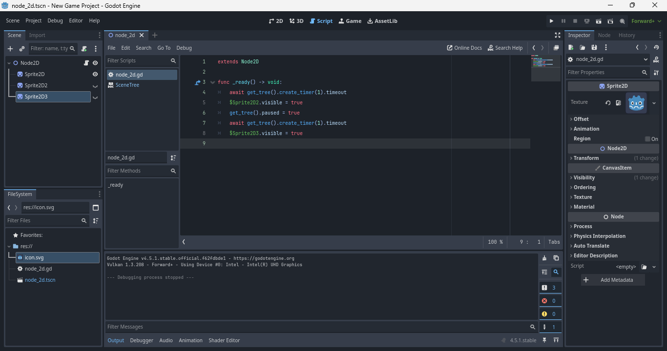 await tree.create_timer(1.0, false).timeout