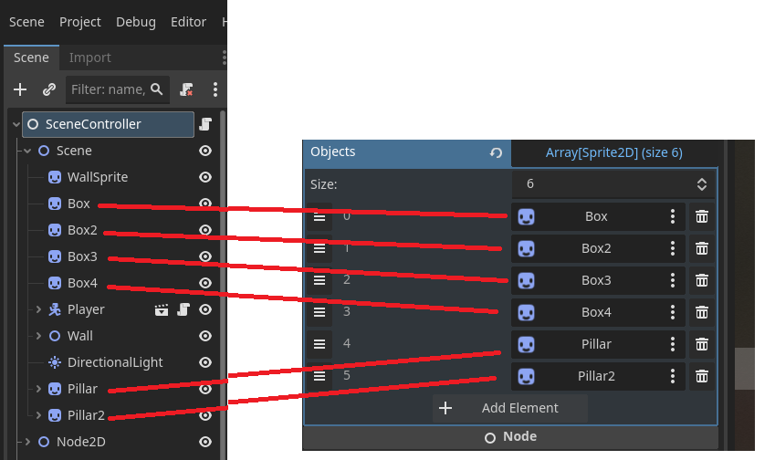Sprites are not in arrays. They are in the scene tree. Arrays can only hold references to them.