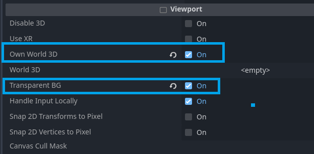 - Enable Own World 3D: Enable Own World 3D to isolate the Camera3D so it does exist in its own world.