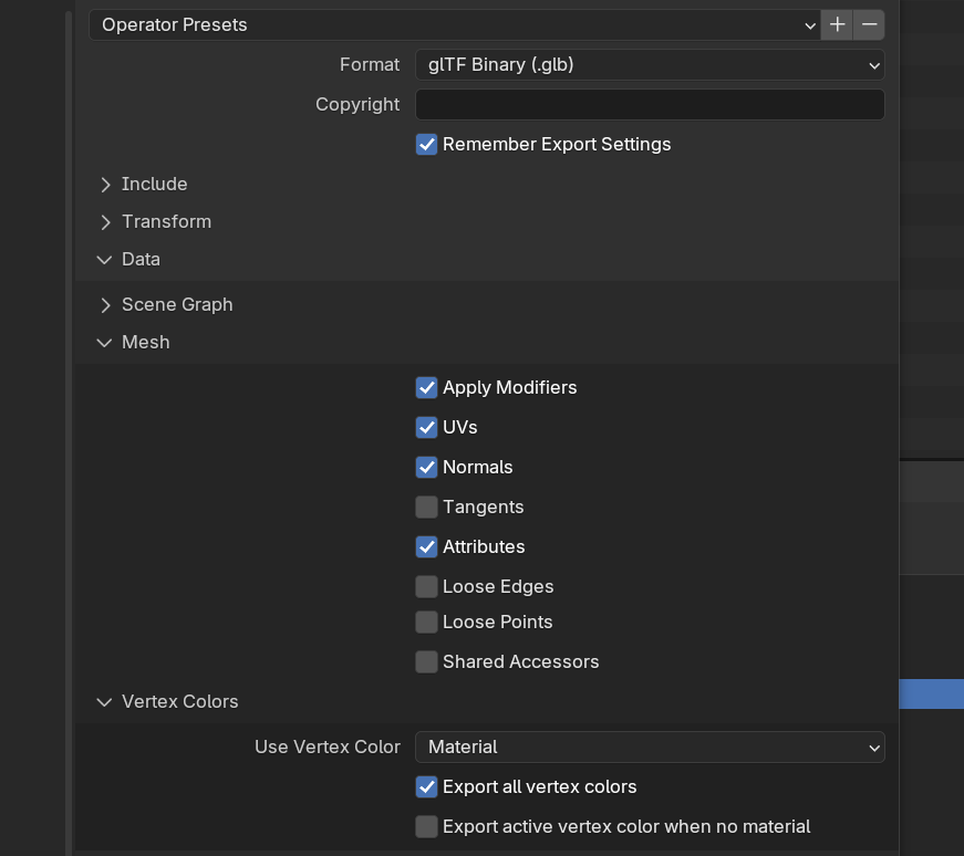 Made a complete new blender and godot files. It works with obj, but It doesn’t with glb, just like before. Just found out more about the problem, it actually works when having an empty material slot assigned to at least one face in blender, only then you can display vertex colors. If all faces have actual materials assigned it doesn’t display anything. This happens with glb, not obj. Is this inteded? Should I report this issue on github? Checked and it also happnes with godot and blender latest versions