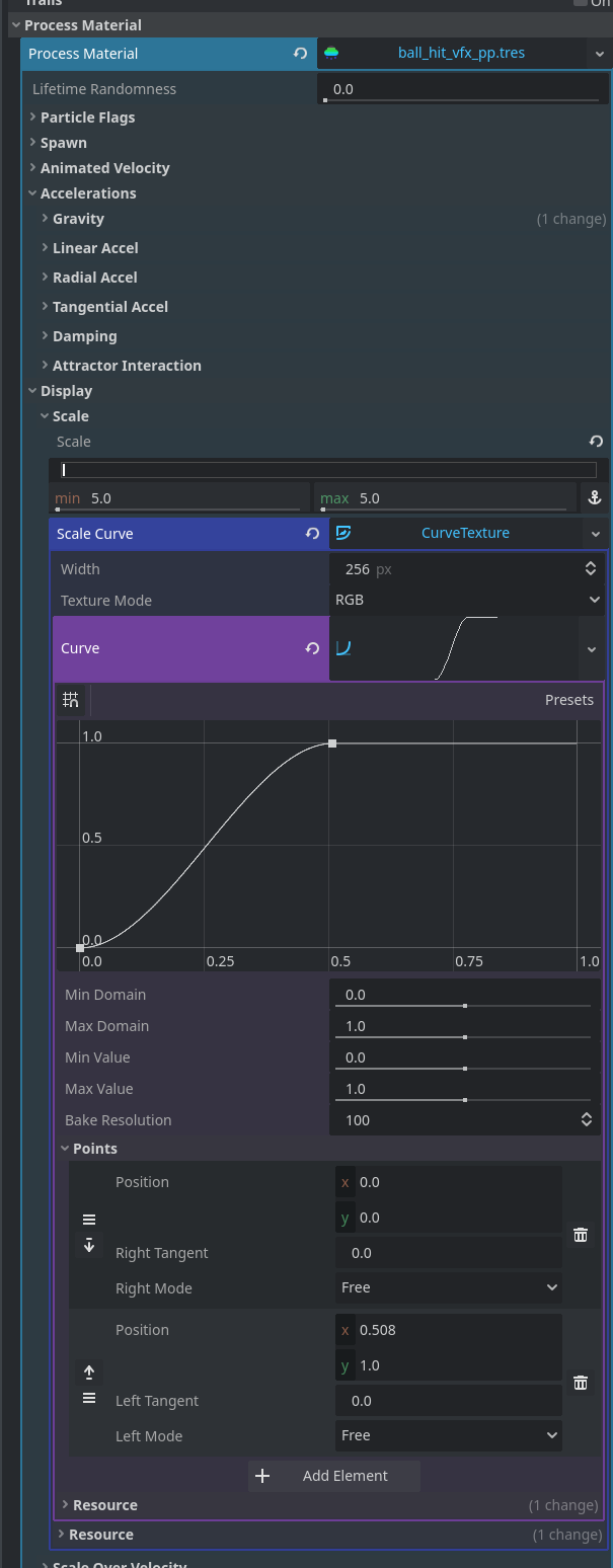 I’ve got a GPU particle node set up with this process material. I’m trying to adjust the y position of point 1 in the scale curve to manipulate the scale of the emission.I think I’ve manages to access the settings using: