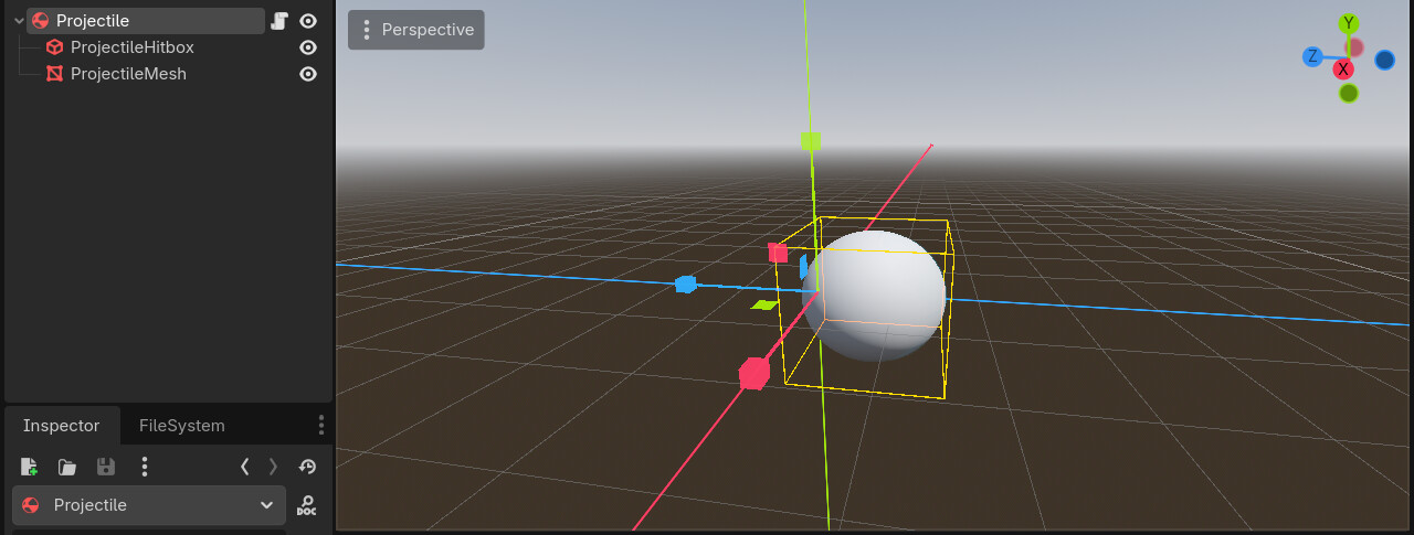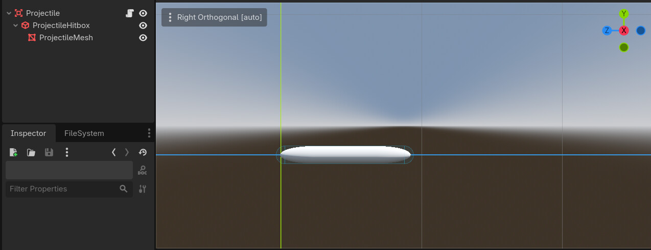 I’ve elongated the projectile hitbox so it has more time to detect collisions. It only kinda works, and looks wonky, as sometimes the projectile only detects collision upon going through the other side of the wall.