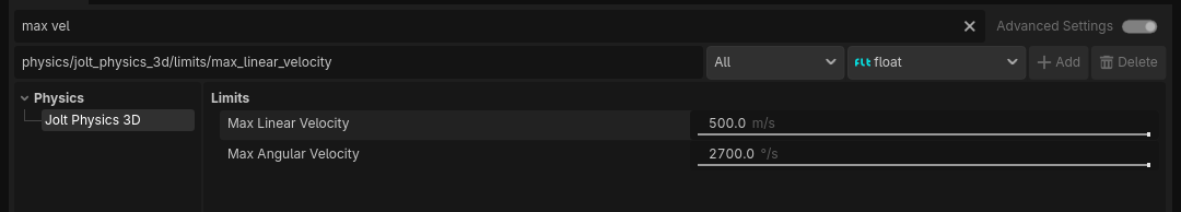 I have a RigidBody3D I use as a projectile, everything about it works, except for the fact that no matter how much force or linear velocity I apply, the projectile won’t fly faster. No matter if it’s multiplied by 50 or 50 million.