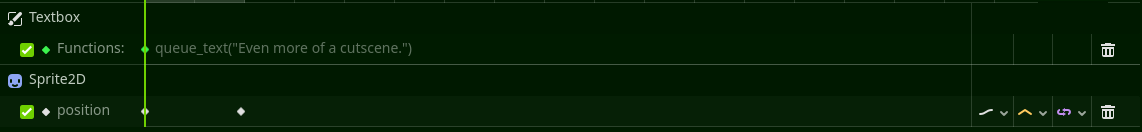 The text flows as it should. If I press the button that progresses the lines of text, it will proceed normally - Except the extra animation, the Sprite2D’s positioning changing. It will happen as soon as I proceed to the very second line of the intro, not when I transition to the next AnimationPlayer node containing the next string of text and the sprite’s position changing. The animation basically is triggered too early.