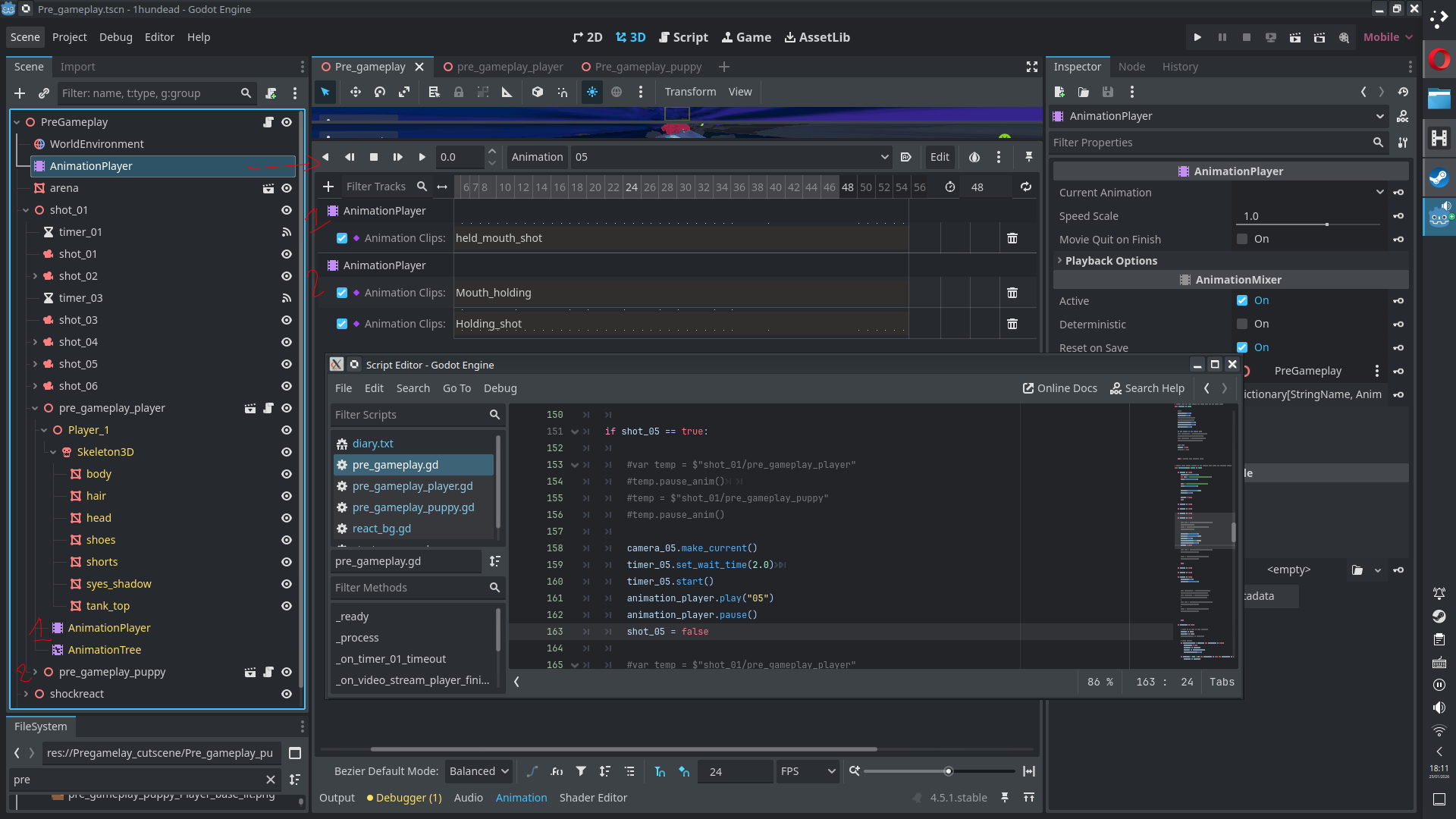 All the code I see, you’re trying to indirectly trigger animations thru an animation player that doesn’t have the animations you want to play, instead it has the animation player which has the animations(?) Is this an in game cutscene you’re trying to create? IDK if one would or should approach animations differently than from live gameplay (in terms of what nodes to use or how to sort them). Why can’t you just use an animation player that’s a child of the player node?
