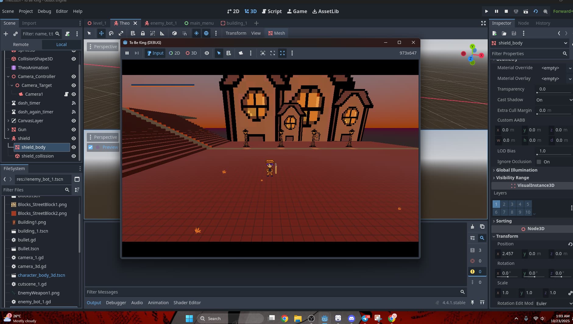 Greetings! I have a shield that is made up of a characterbody3d, a mesh instance (temporary), and a collision shape. How do I code it so that it always sits in front of where the player is facing?