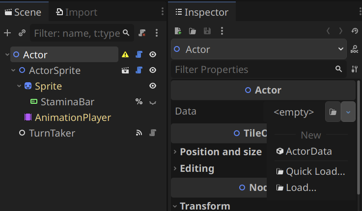For your actor class it may make sense to do what you’re doing. However as I have continued to use Godot, I tend to prefer composition over inheritance. So if I were to make that goblin again, I would might make it straight up with components, and then copy it and change the components for the zombie. If I change a component (like a state), it is inherited. But I’m not sure. That’s the fun of development.