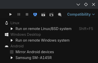 Android uses adb. The simplest way to connect an Android device is via USB. You’ll need to enable USB debugging from the developer options. Once that’s done, plug in your device with the editor open. Your phone should ask you for confirmation, after which it will show up under the Remote Deploy menu (see the first screenshot).