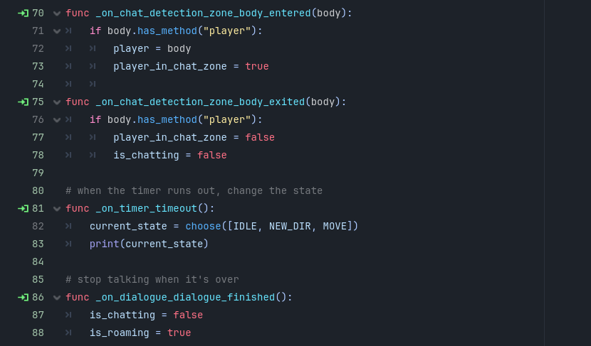 elif current_state == 2 and !is_chatting: # move based on direction and if not chatting