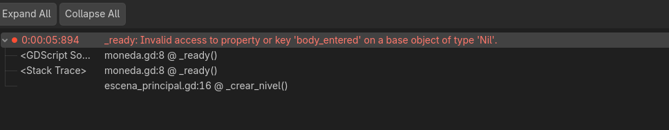 This is the code, but when i test and collect the coins (moneda) on llvl 1 jumps this error
