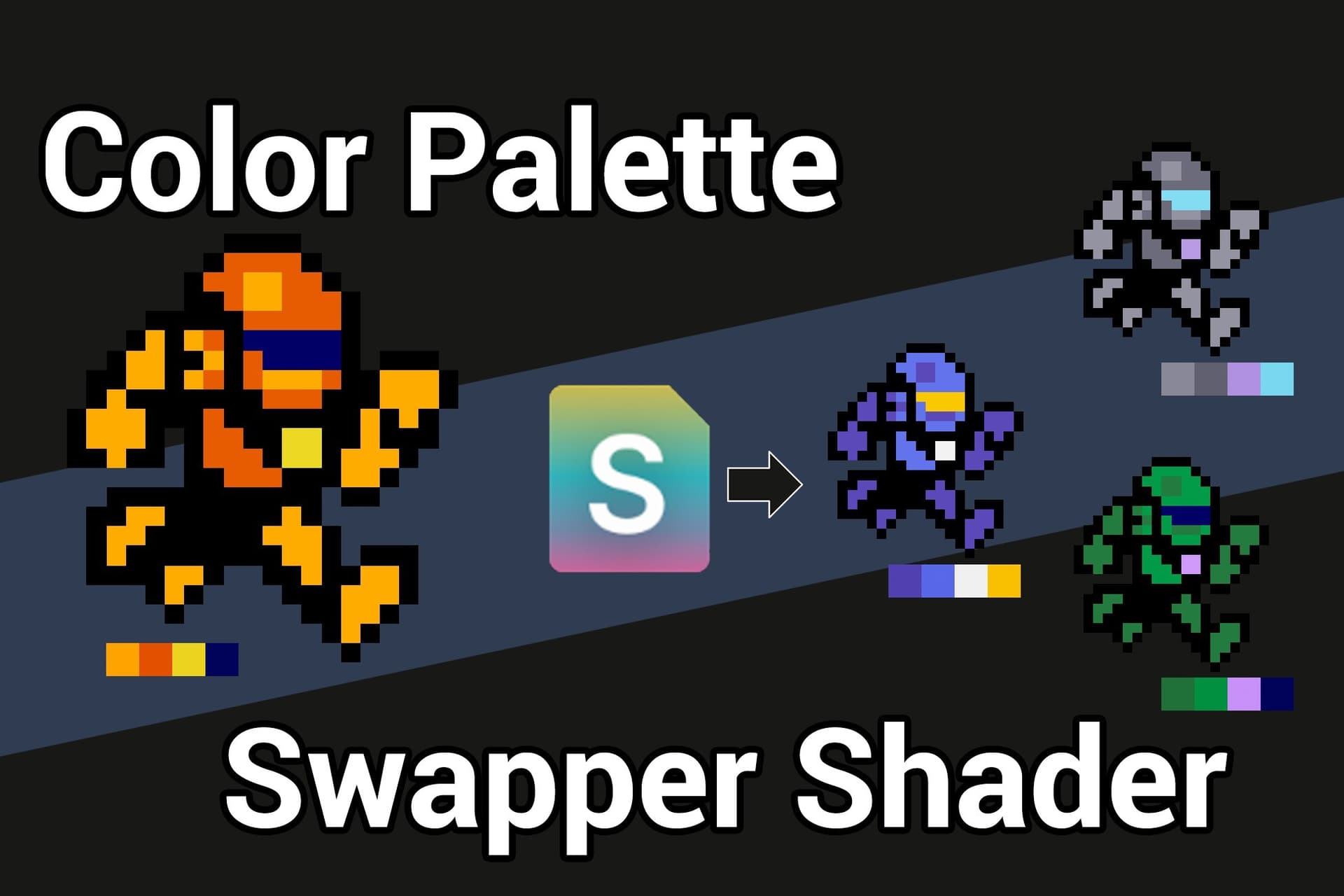 For instance, to have multiple armors or items in general, a simple way of reusing your animations would be to use color swapping, either by using Godot’s modulate/self modulate properties, or a custom shader.