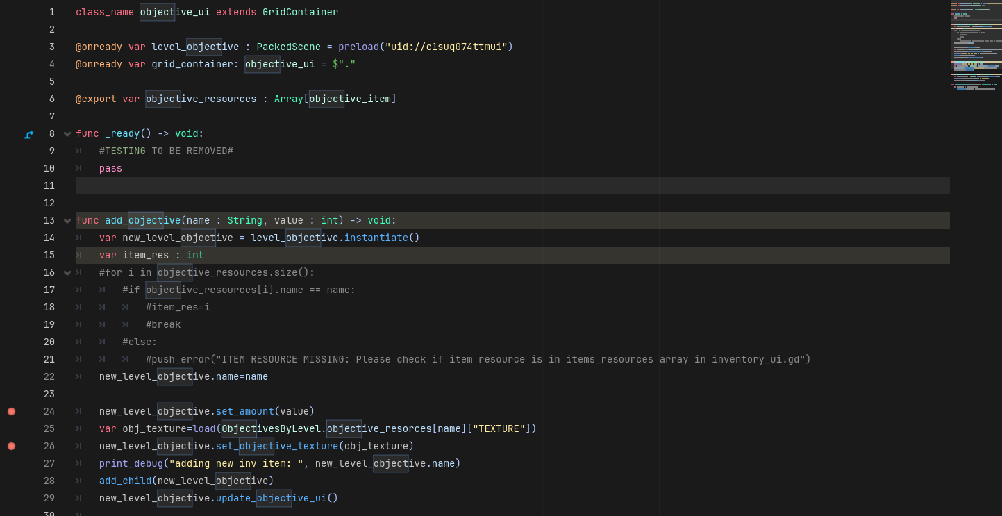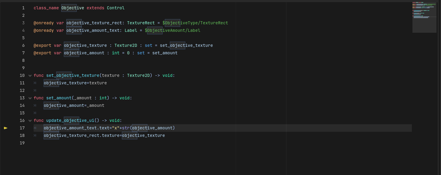 Trying to add an “objective” packedscene that has two child nodes, ObjectiveType and ObjectiveAmmount, into another node “Objectives” However, when instatiated the “Objective” scene the two children are null. Attached in the relevant code. Any help is appreciated.