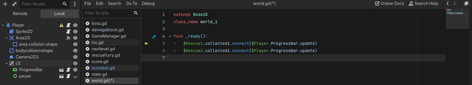 now it is saying invalid access to property or key ‘collected’ on a base object of nill. I also cannot do the Rescuable = $Rescuable. There seems to be no problems with the name, but the signal isn’t working.