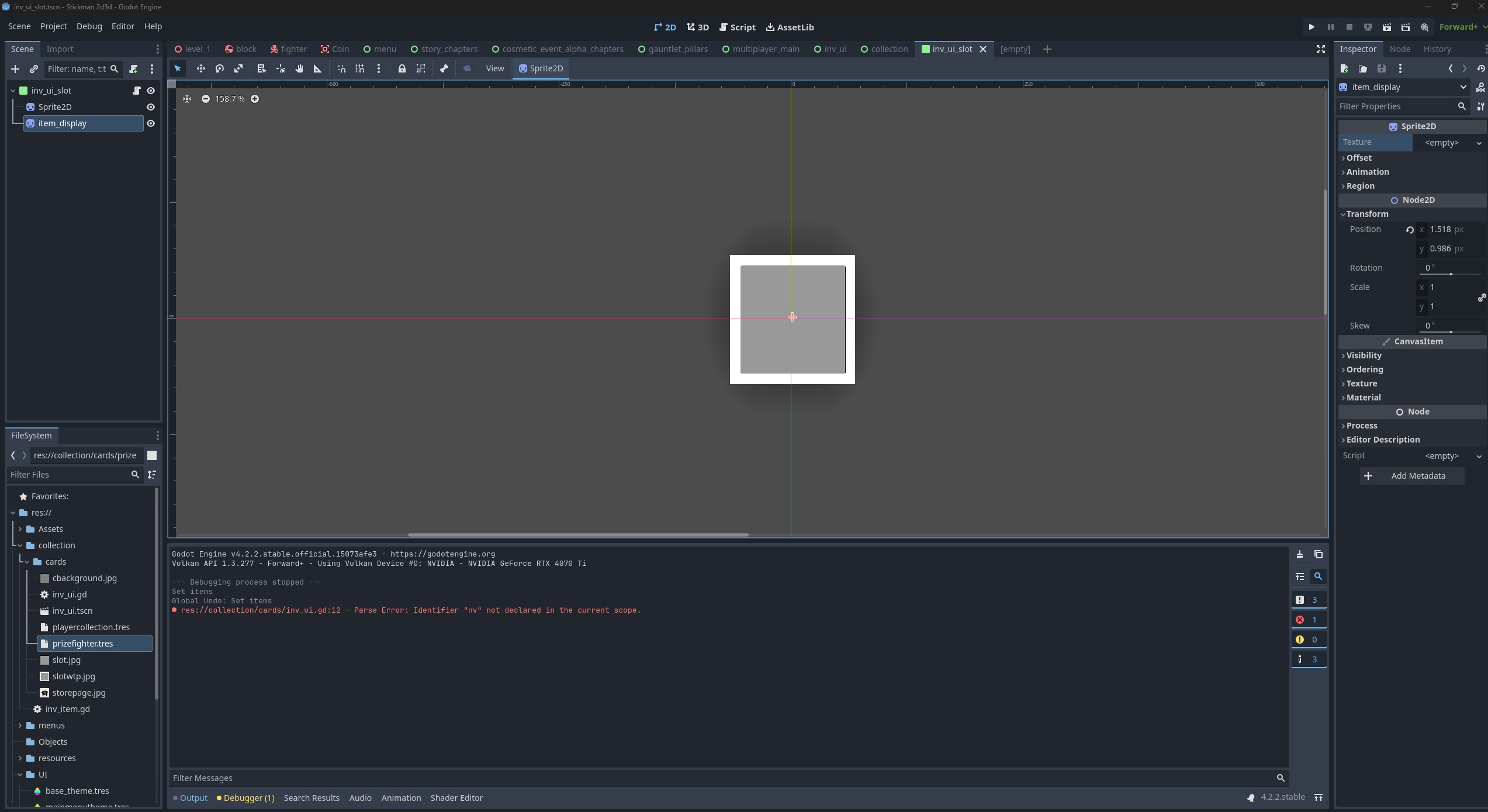 i think the issue has to do with the inv ui slot maybe the img size is way to small, or i can’t attach an inventory to a ui ‘inventory’ node. The slots are the grey boxes with white borders in the colleciton tab so i know they are synced up. did the sizing and scaling myself.