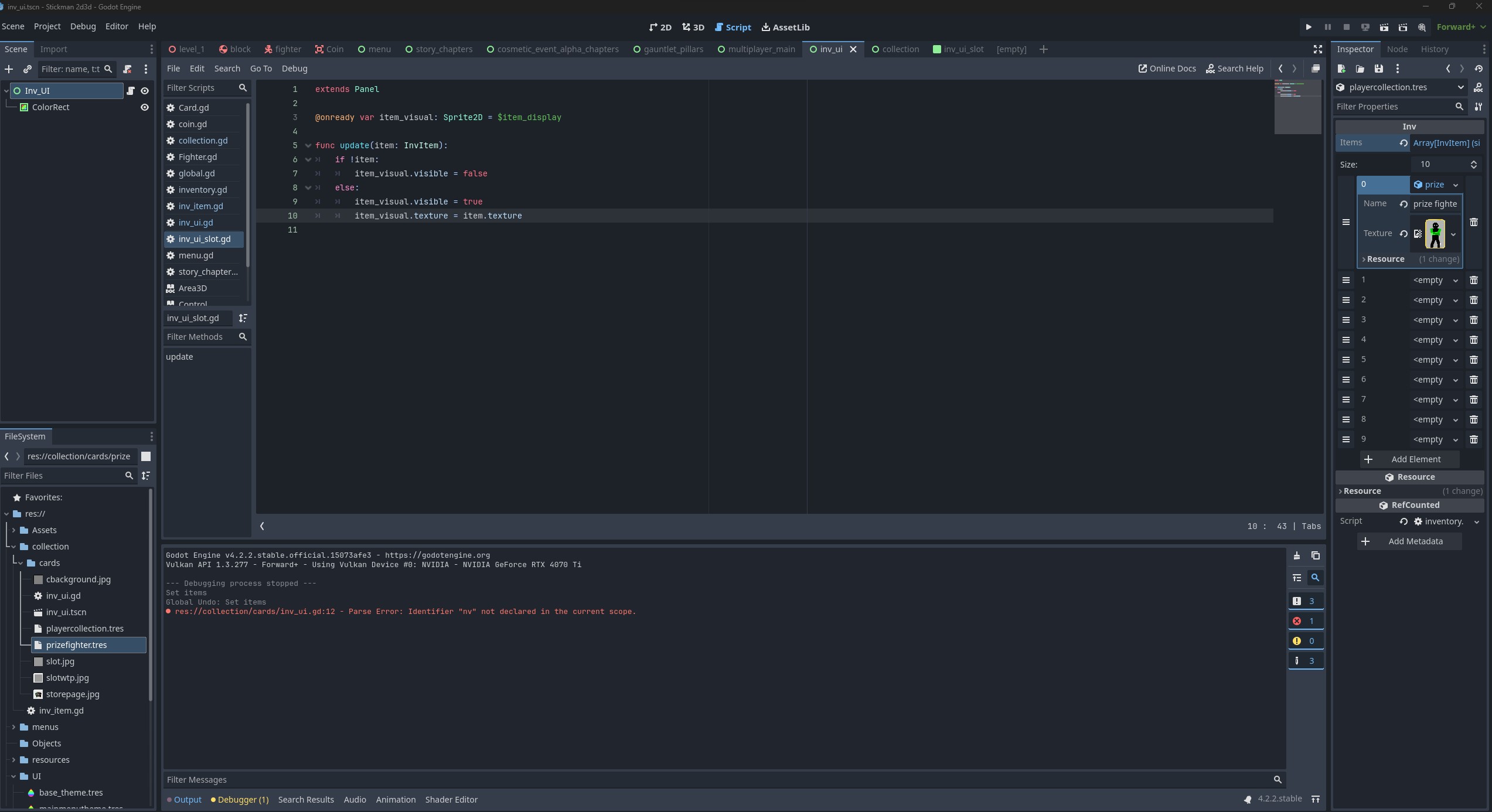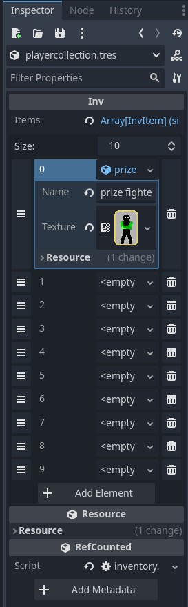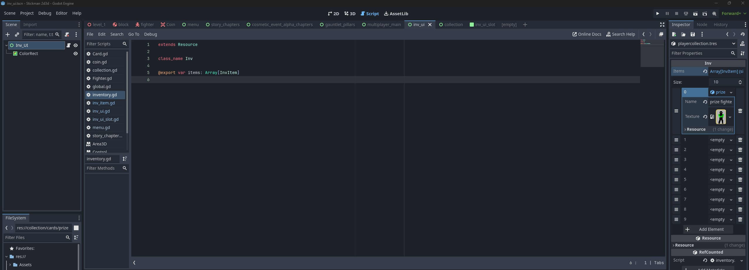 and am pretty sure i exported playercollection.tres to the ‘collection’ scene/menu. Shown here: