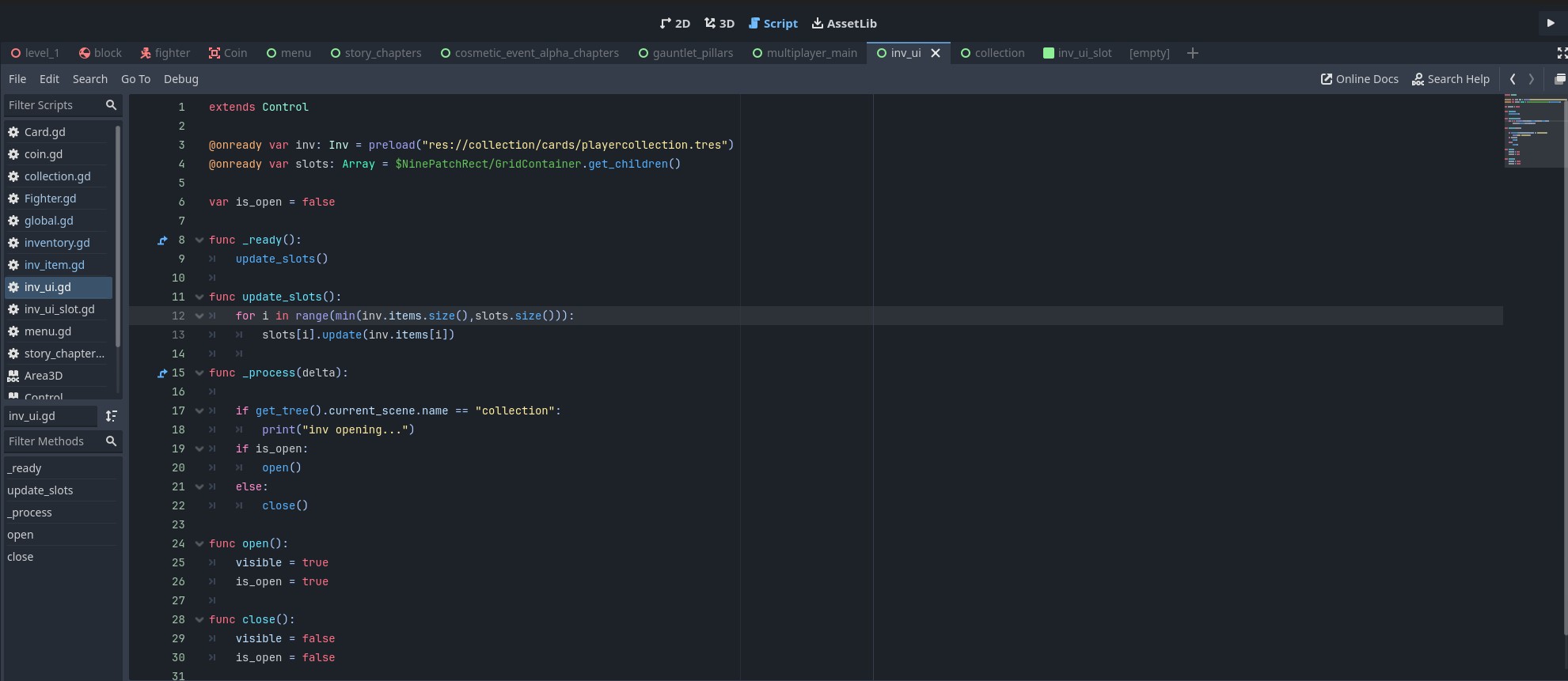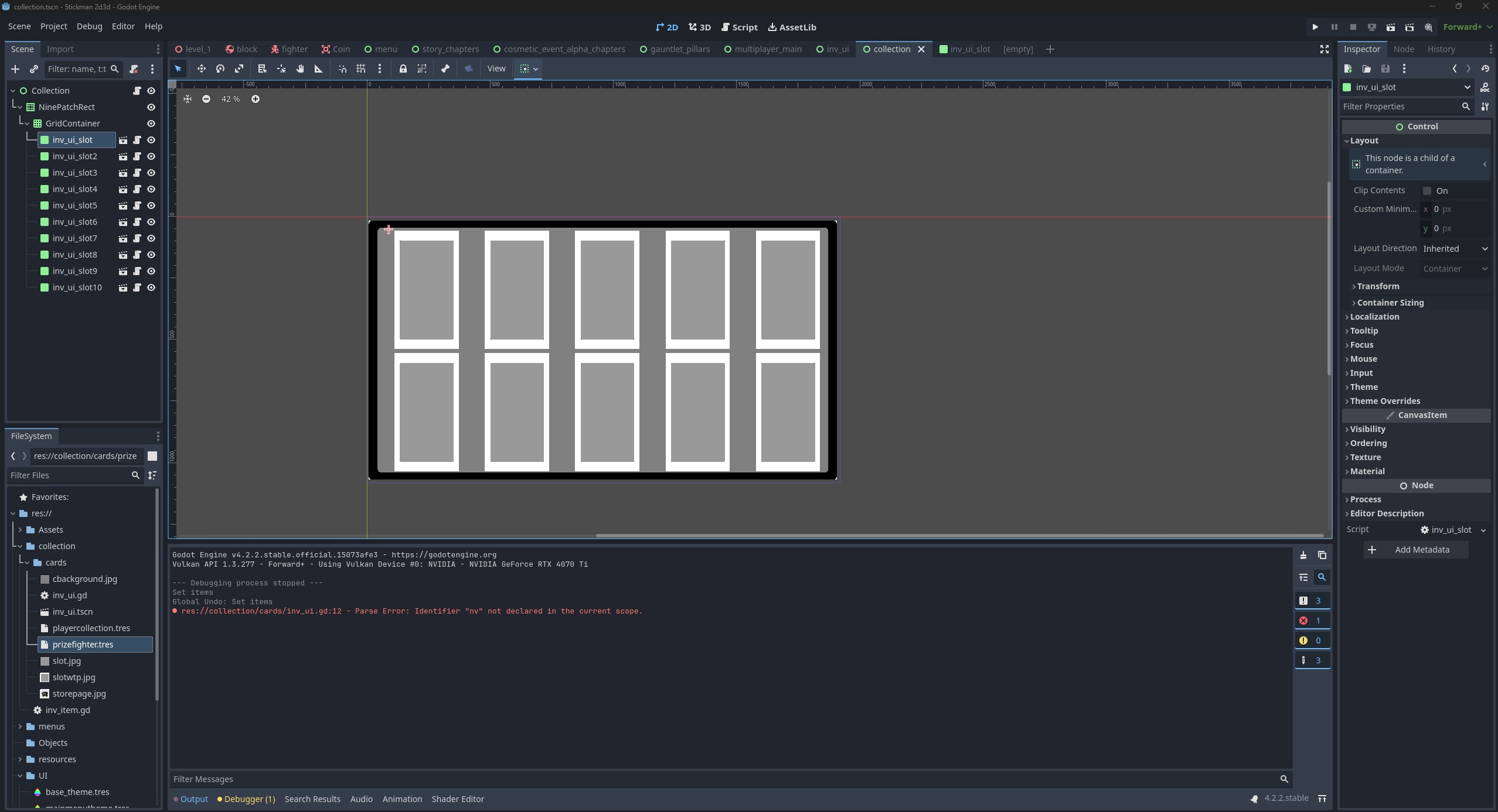 Basically what i want is a menu that goes to another menu when i click on it, which works so far. My inv_ui script is attached to the ‘collection’ scene (a UI node, which can be navigated to via a button on the ‘menu’ ui node).