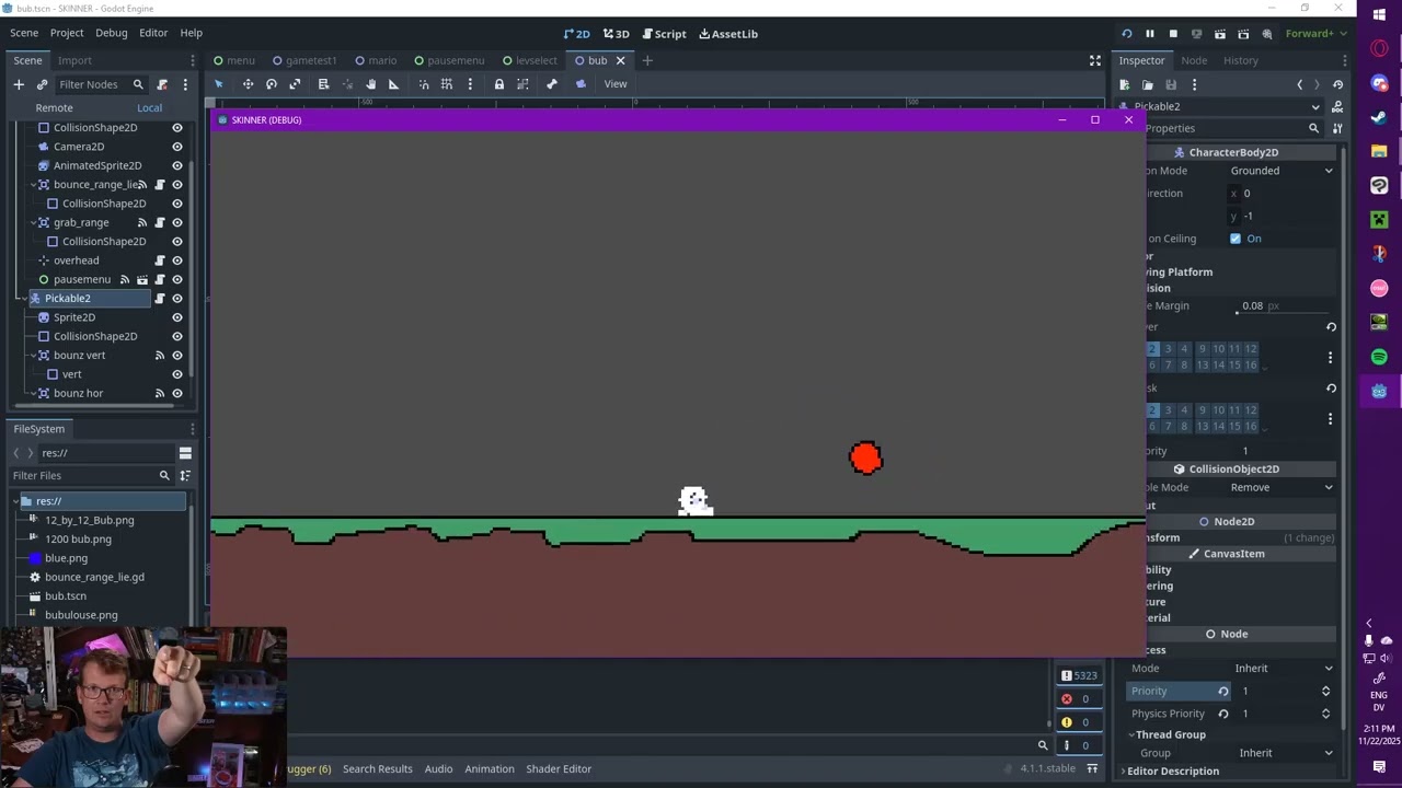 hello! i tried using a rigidbody2d at first actually but the code i used to “pick up” the ball would directly set the position of the object, which i’ve learned is a no-no with rigidbodies as it really messes with the physics.