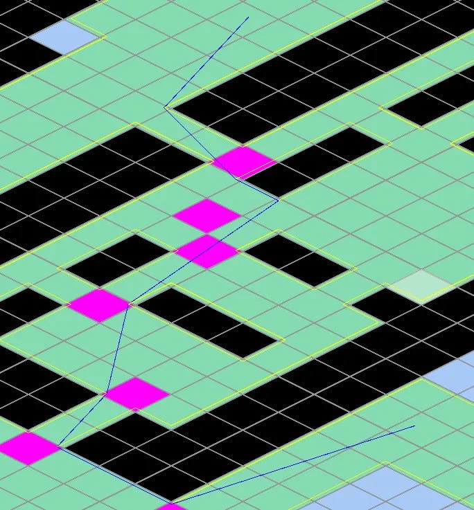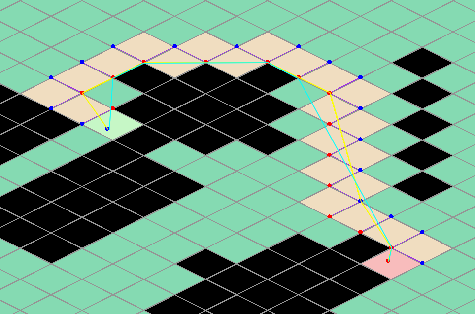 - pathfinder.gd: The meat of it. A* search, tile-level path smoothing, and