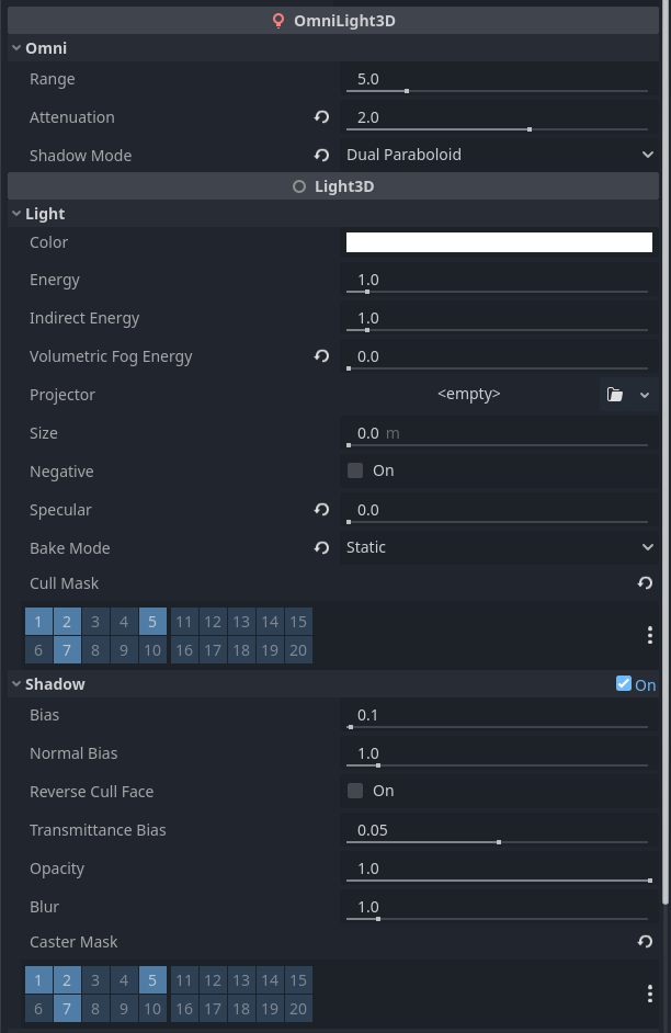 All the static lights are setup like such, only changing the color: