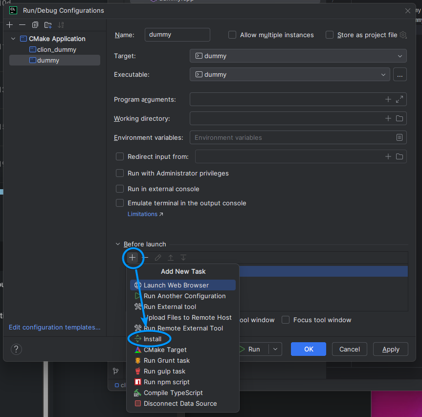 When using JetBrains CLion for writing GDExtensions, you have to provide the run settings with an executable, even when you are making a library. You can’t point it to the dll-file you are producing, so you need to give it some other application to run.
