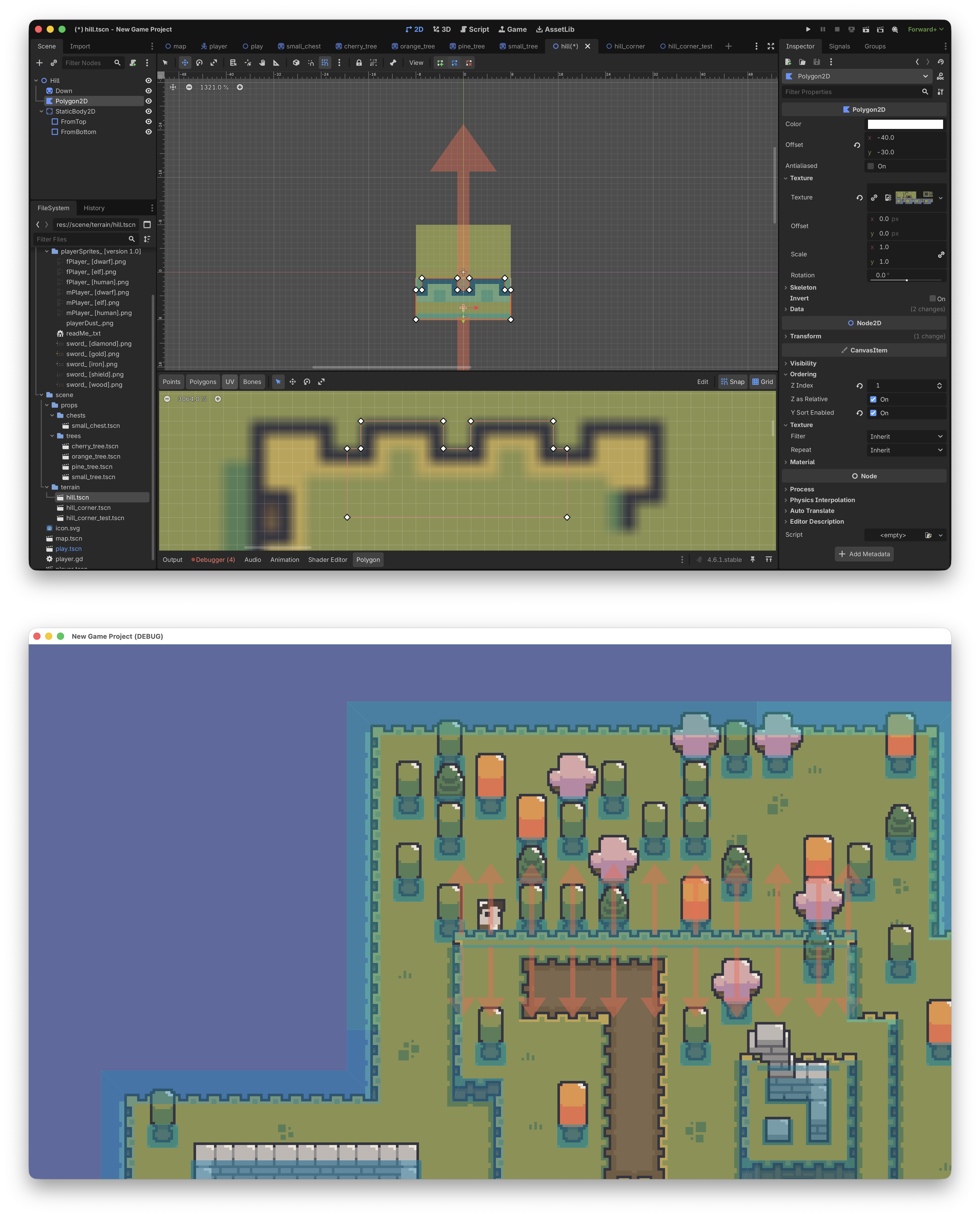 I’m trying to make a cliff tile partially participate in Y-sort in Godot, but I can only get the whole tile to sort as one object. What I want is for only the lower part of the cliff to cover the player when they walk behind it, while the upper part stays visually above as part of the background.