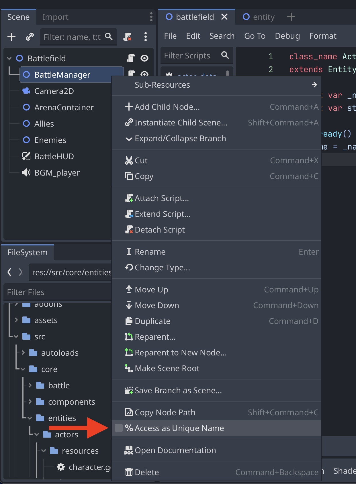 TL;DR: Create a unique name for the node, declare it in the code as a @onready var and it’s done.