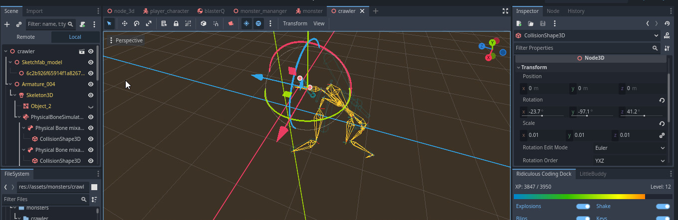 - The character disappears from the scene when it has physical bones, without even calling start simulation