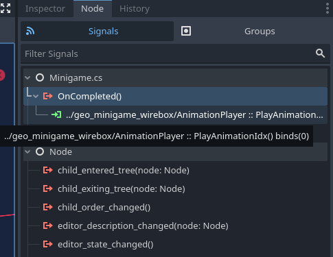 I’d rather not connect the signal via the Minigame script since it makes the script too specialized for its intended purpose. Maybe I’ll make a specialized class for this one specific minigame which connects the signal as suggested.