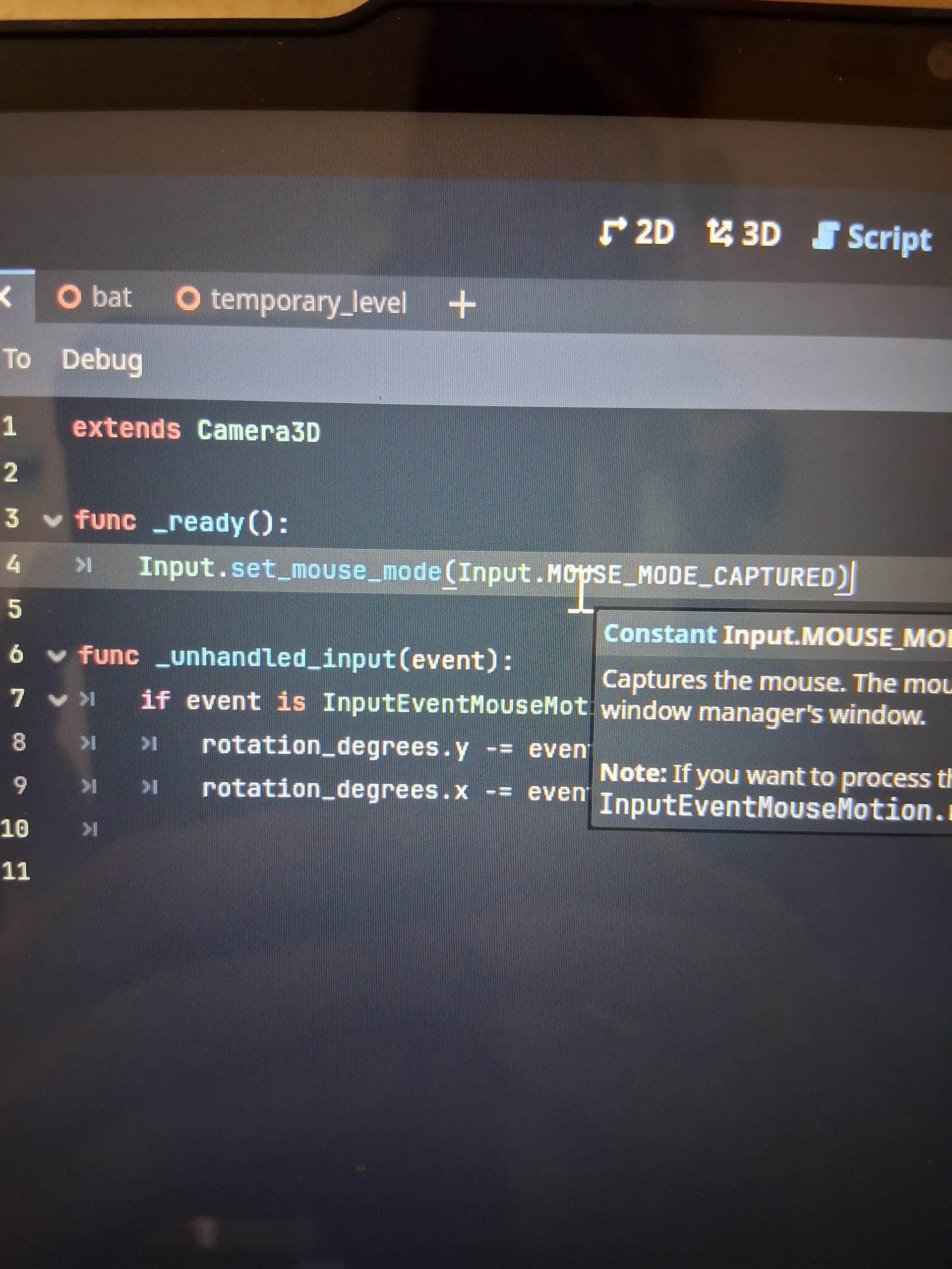 Input.mouse_mode = Input.MOUSE_MODE_CAPTURED