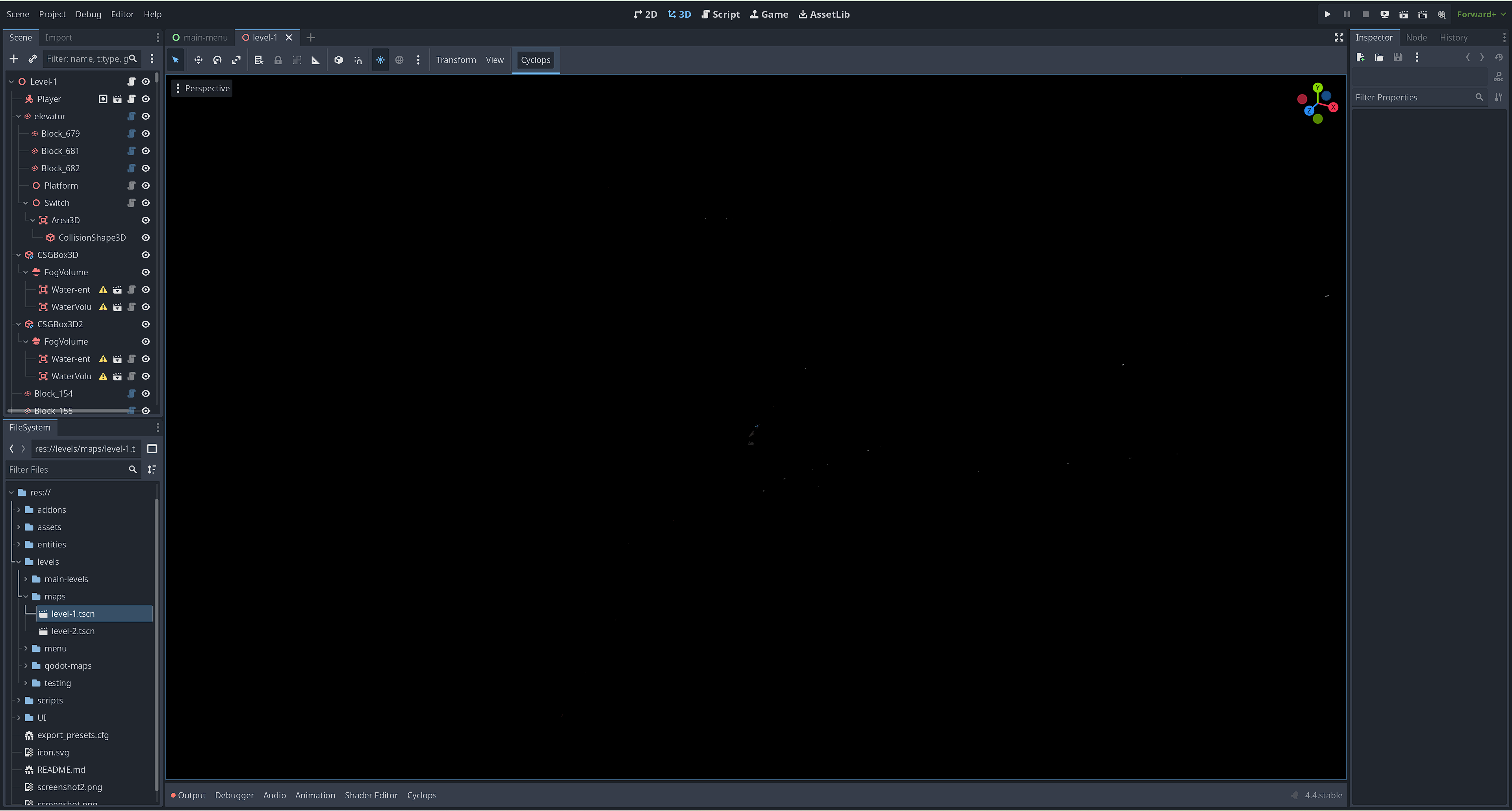 Hello Guys I been working on a project for some time a small boomer shooter game inspired by the dusk and other games alike. after taking some time off from my game i recently returned to add some features to this project and everything was broken the editor loads up by non of the 3d object appear nor the ones that are built in engine like CSGBox3D nor the ones I created in blender why is this ? is anyone encountered this before if you know please help that will mean a lot to me. here are some pictures of editor: