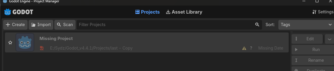Open up the windows/linux file explorer and see if that path exists and if so check if your project files are there.