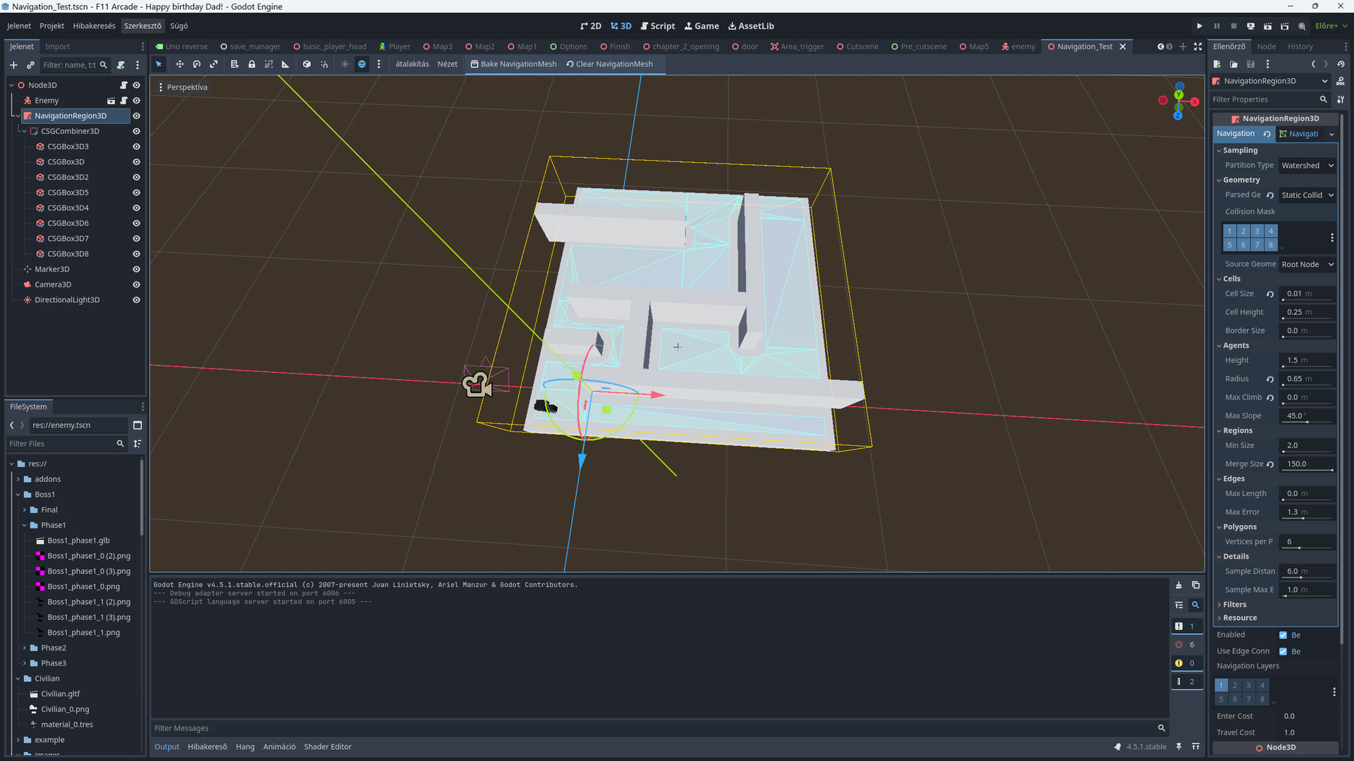 It’s the first one, at the second one I gave you the navigation agent of the enemy, at the third- fourth it’s the navigation mesh, and at the fifth, it’s the enemy(in case of any problems with arranging my nodes)