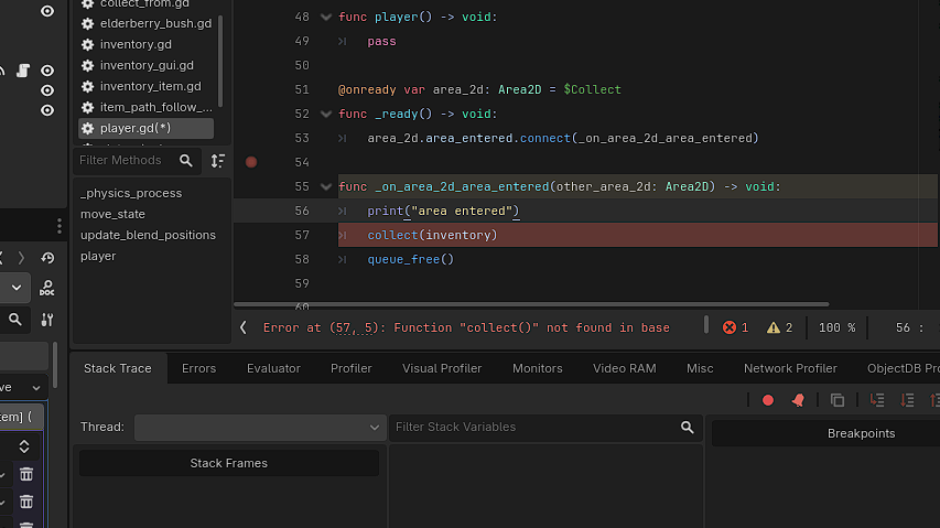 hmmmm, i followed the tutorial exactly and the only thing i changed was not including the func on_hurt_box_area_entered(area): if area.has_method(“collect”):