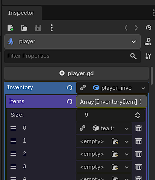 Does anyone know why the inventory is showing up as null? I placed the inventory array as an export on the player.