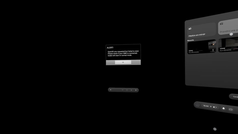 `Hi, I’m experimenting with Godot for VR headsets. However, I’m having a problem. When I launch the app on my Meta Quest 2 VR headset, Godot appears in window mode as an Android app, not in VR (OpenXR) mode. I am using the XR Example which is compatible with Godot Version 4.3.
