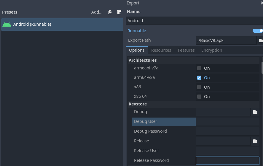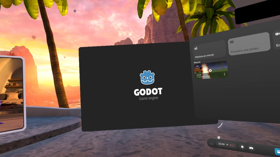 If the application loads in a loop, it’s because I hadn’t configured the main scene, and now that I’ve configured it, it works. The hands are dark, but that’s because I haven’t set the EnvironmentMap, but that should be configurable in the Godot editor.