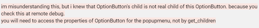 even after letting it run for a few minutes the OptionButton apparently still has no children, when in the remote scene tree it looks like it should