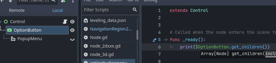 Did you add the PopupMenu node to the scene tree yourself? the one I’m trying to reference only exists on the remote tree – i.e. while the game is running