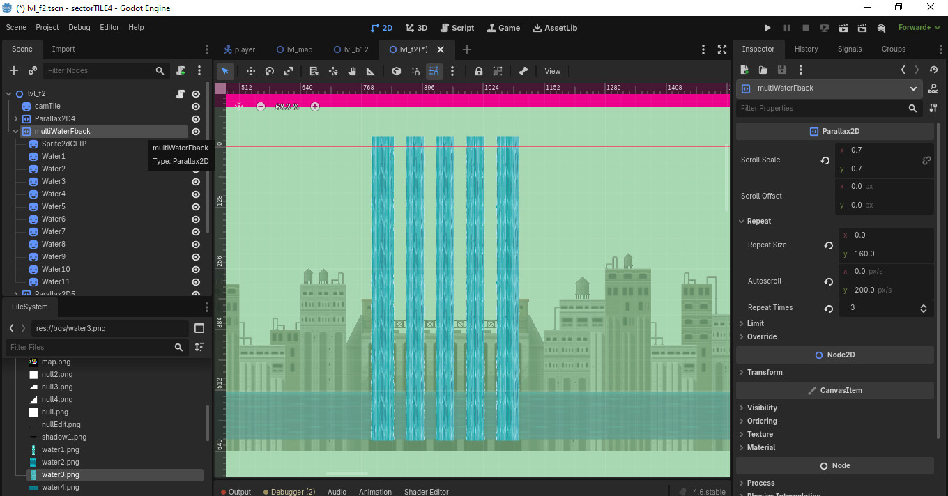 The in game is diferent from what shows in the editor… I dont think parallax2d works with clip childern ?! The values are all wrong… I dont even know how to describe…