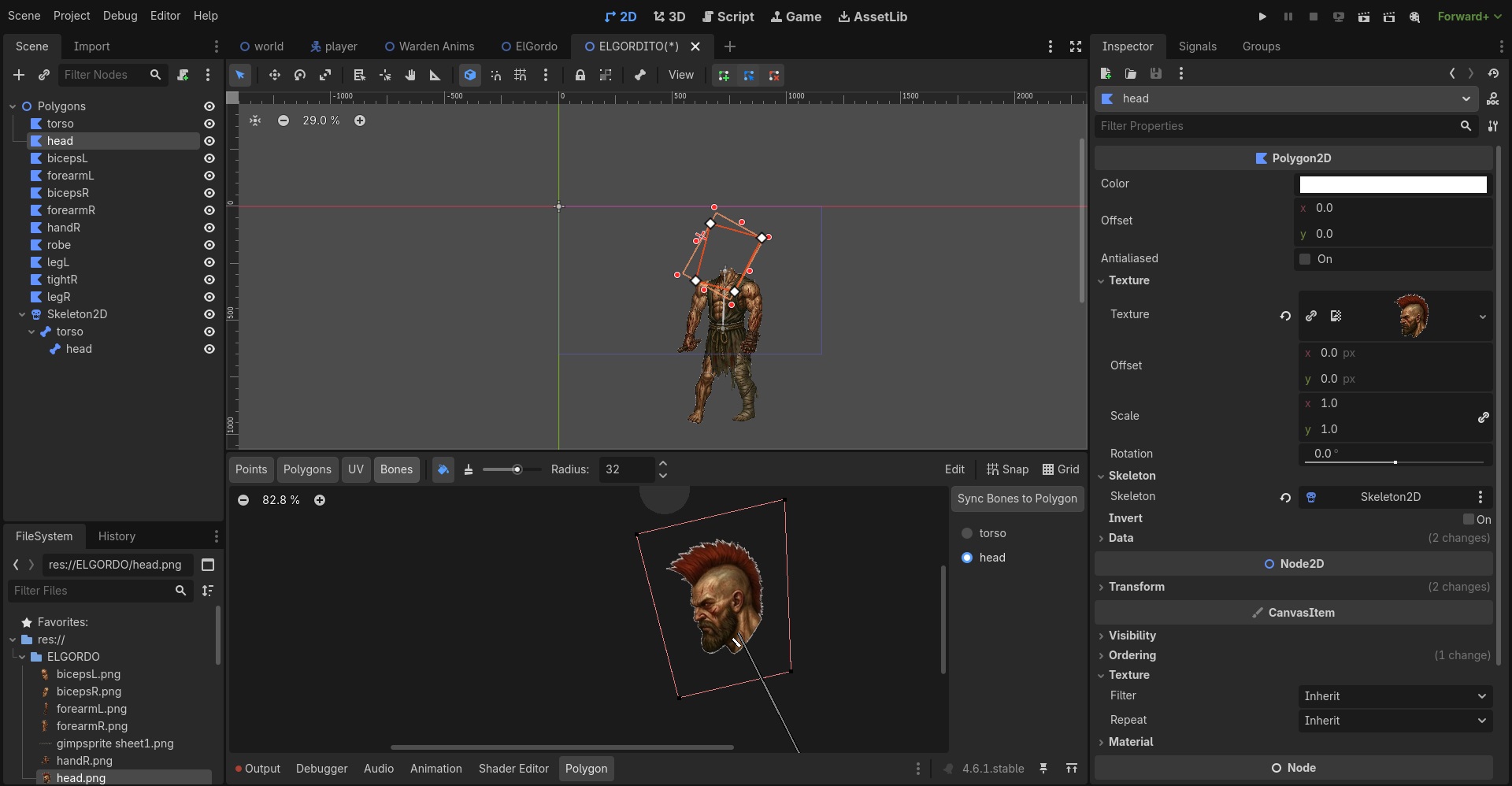 you are trying to use the parts separately,for that you can use sprites,and if you want the hand to bend then you have to use Polygon.