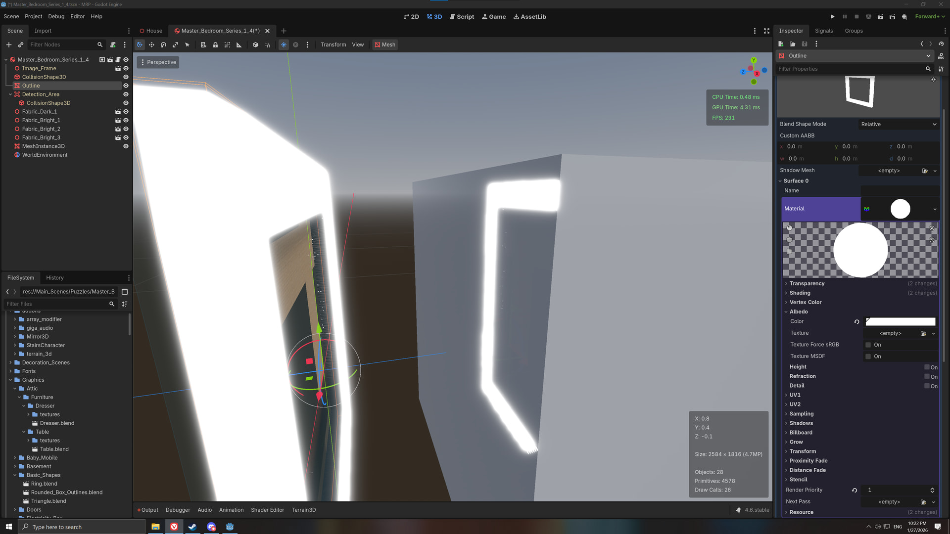 The game in it’s current state uses glowing objects to show that an object is interactable (You get close to it, and it starts glowing to show that you can interact with the object). I’m thinking about those glowing objects as something that isn’t a part of the world, that the player see but it’s character isn’t. That’s why I want the world to behave like it’s not in there.