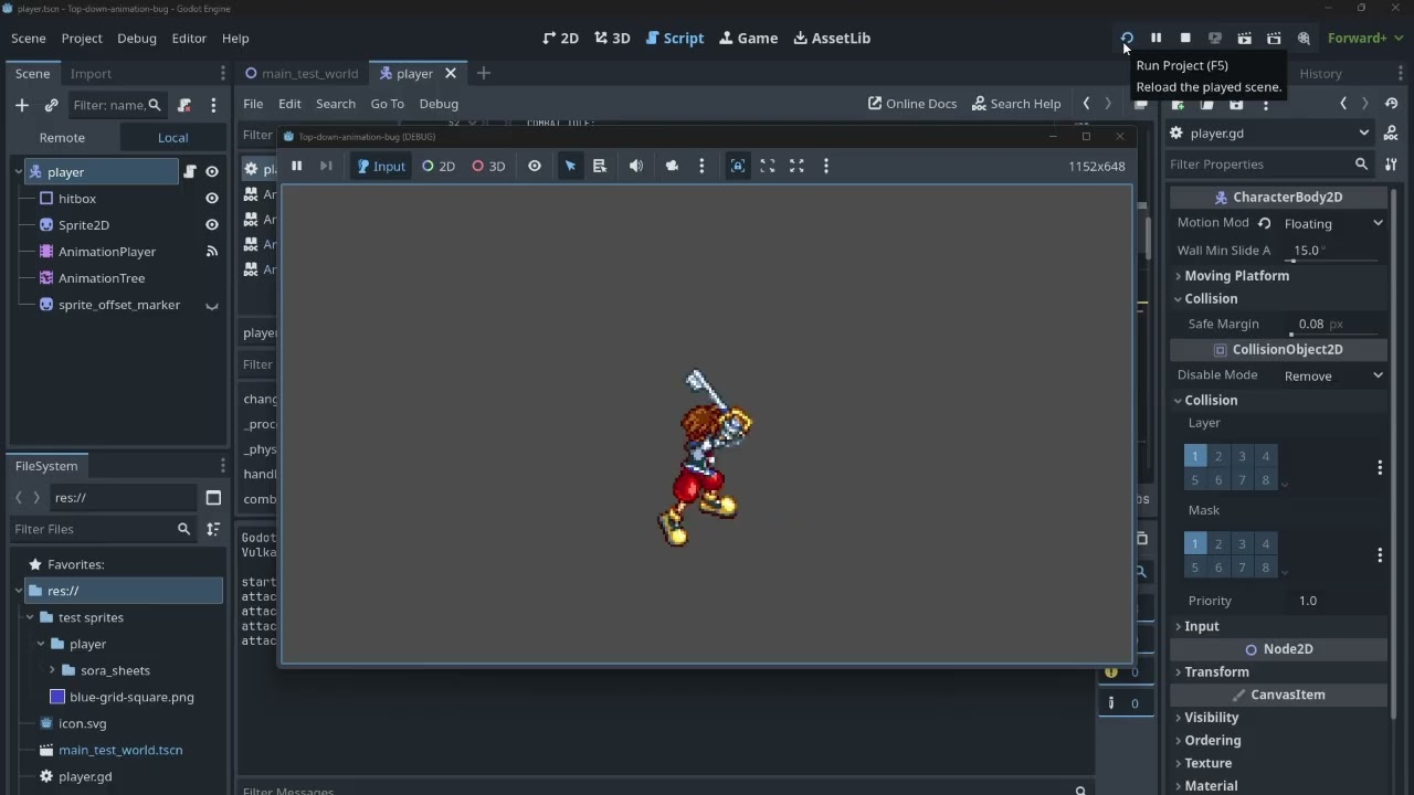 I suspect it has something to do with the BlendSpace2D nodes I have setup for the directional attack animations and switching animations on the same frame as the method should be called, but I’m not sure how to fix it or even if that is the true problem.