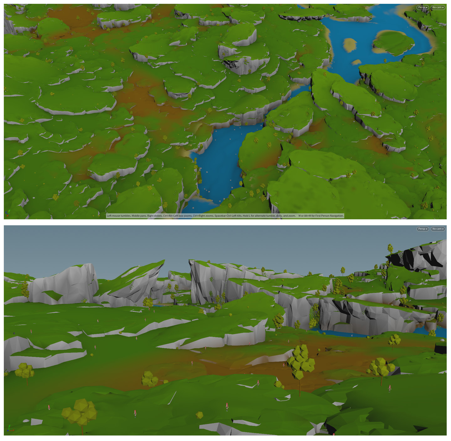 I’ve been trying to recreate this type of terrain using Perlin noise for the past week, but it’s been quite difficult. So far, my approach has been to first generate the base terrain, then create a larger plateau, and on top of that add medium and small plateaus, blending them together. However, the result doesn’t look good and doesn’t resemble the terrain in the image.