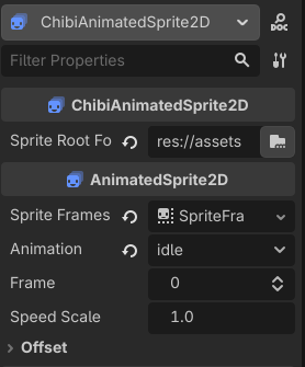 CraftPix.net has a bunch of free assets that would work for this. Specifically characters with animations and backgrounds. Take a look at their Chibi Characters. I’ve created a plugin specifically for setting them up in an AnimatedSprite2D. It’s called ChibiAnimatedSprite2D, and I’ve used it in a number of my games. Each character comes with a bfolder, and inside that, a PNG Sequences folder which contains a folder for each animation. You copy all the animations you want to your project in a folder for the character. Then you load that folder.