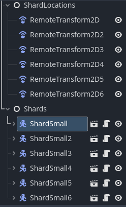 hi, i’m trying to create a buckshot like projectile where, after some time has passed, it will break into smaller pieces and scatter, to do this i’m using a remote transform to place the projectiles at the edge of the bigger one, then i deactivate the collisions and physics processes until the bigger projectile is destroyed.