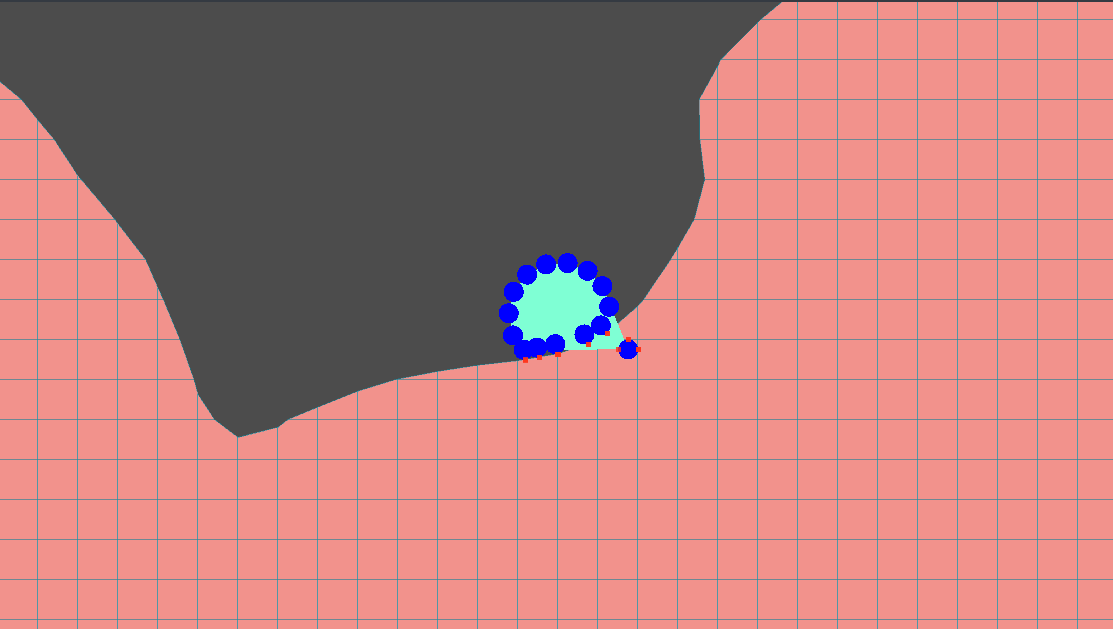 I am currently implementing marching squares terrain and softbody physics at the same time. I wanted to test them together to see how it feels (the softbody can be controlled with arrow keys) and when the softbody fell of the “cliff” one of it’s points clipped through the static body’s collision: