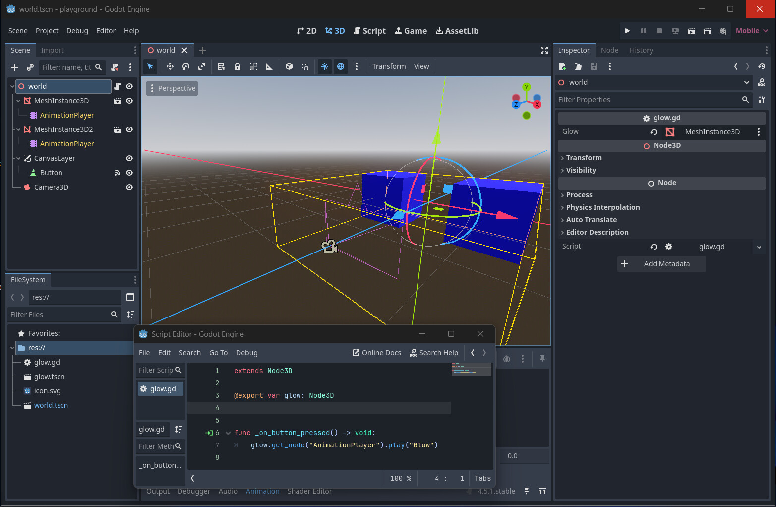 Hi I have a scene where I have an animation player on a node, I have multiple instances of that node and have a script that stores one of the instances and I would like to play an animation on that one instance but for some reason when I play it runs on all instances.