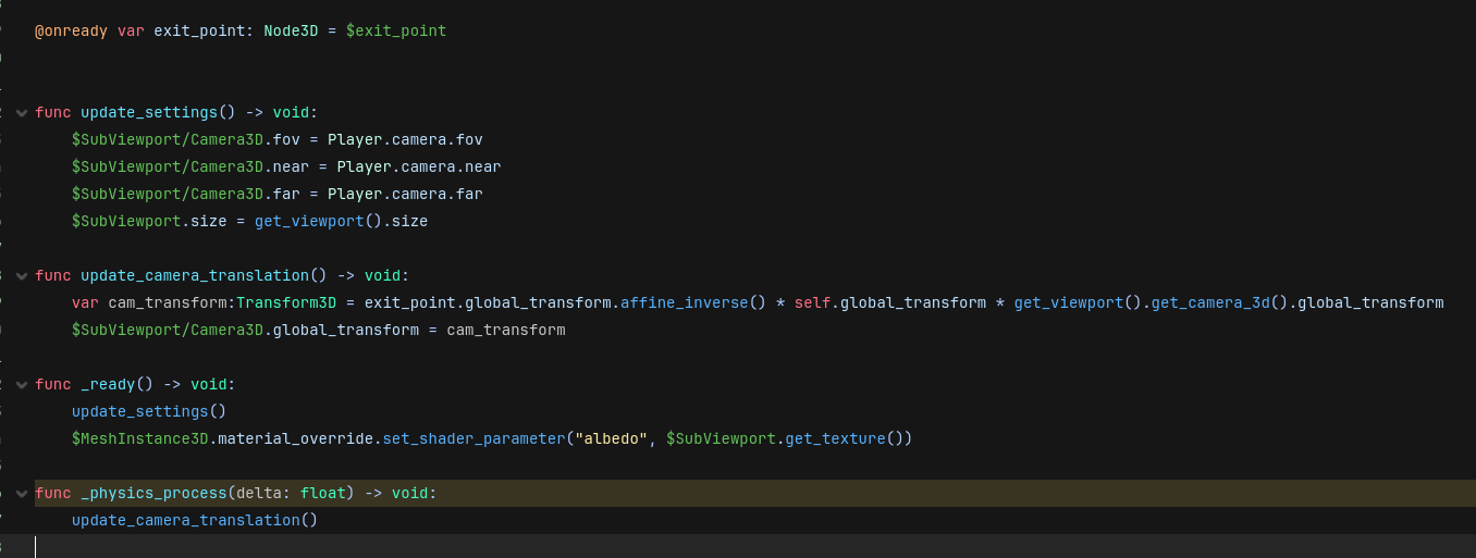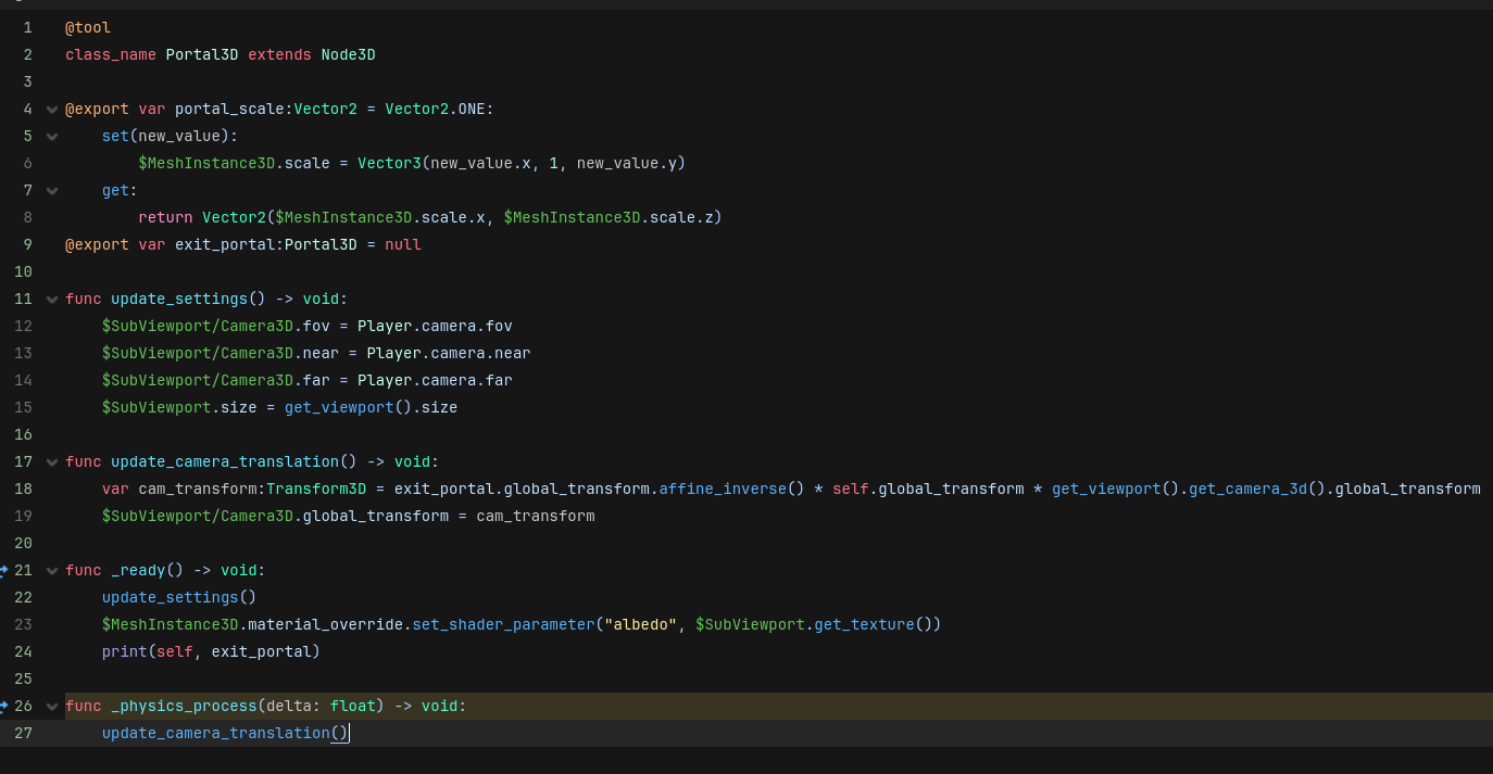 `Hello, I’m currently trying to code a seamless portal system for a little non-euclidean game I’m currently making.