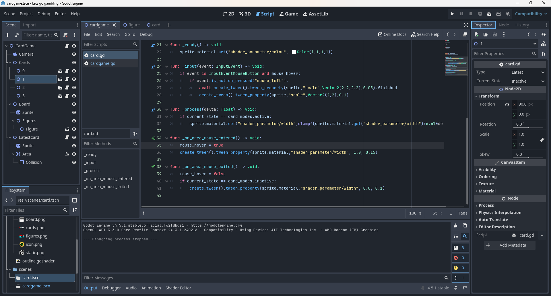 But all of the cards (scenes) share the same material if you don’t enable material’s resource_local_to_scene flag. Then when you enable the highlight through the shader, this highlight works for all of the cards, because it’s the same shader for all cards. You can think it something like a ‘static variable’ if it makes sense.