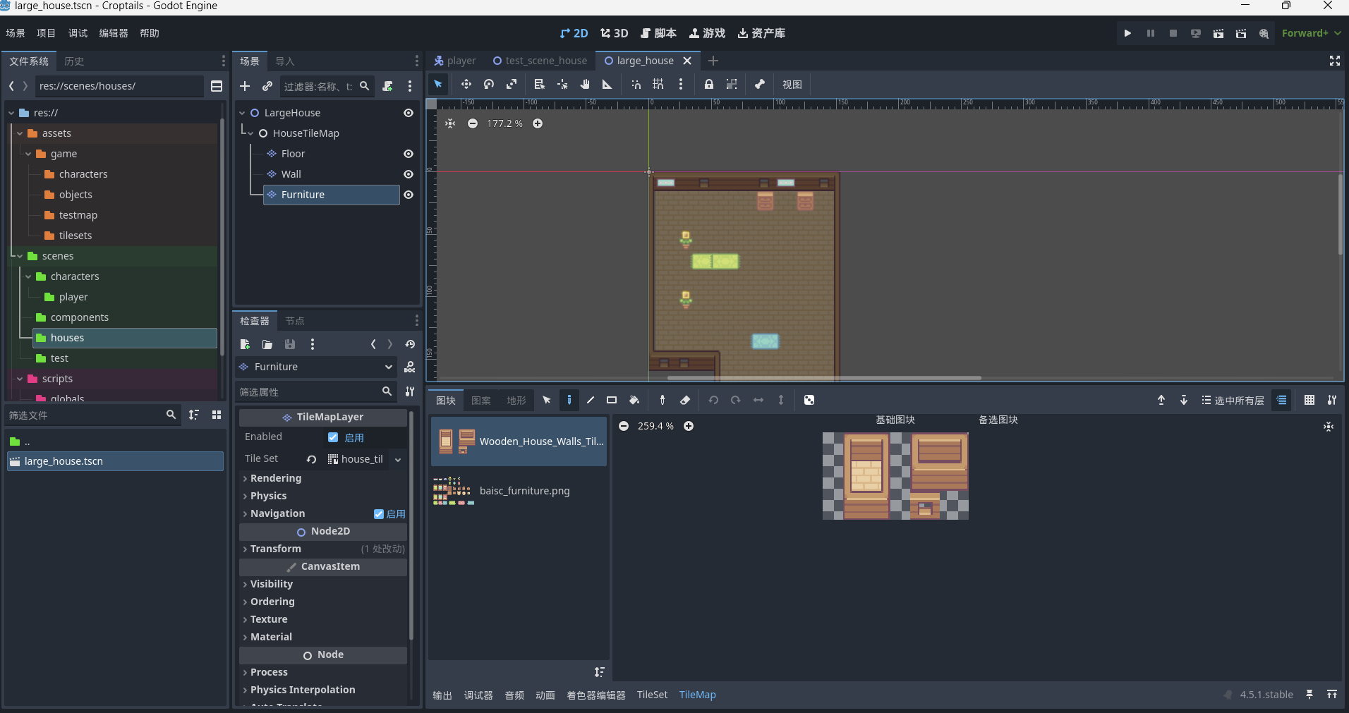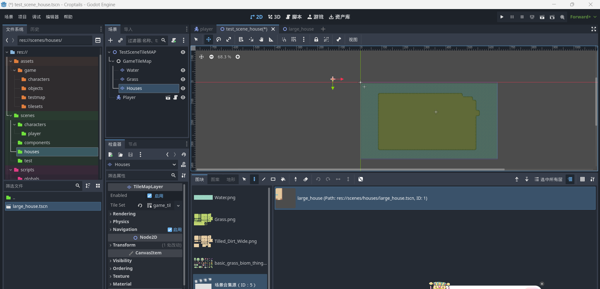 I created a house scene in large_house.tscn, and I made sure the house is smaller than the overall map area in test_scene_house.